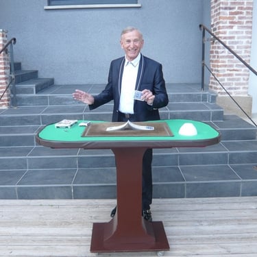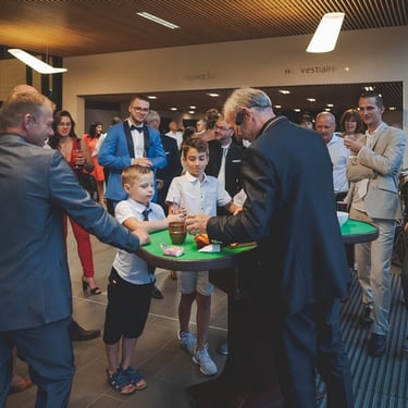 Jean-Marie Le Royer, créateur d'instants magiques, vous propose un spectacle chaleureux de Close-up en passant de groupe en groupe, à la table de black-jack en mode déambulatoire, cocktail … Le public peut être assis ou debout.